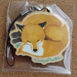まるまって眠るキツネのイラストを木製ストラップにしました。